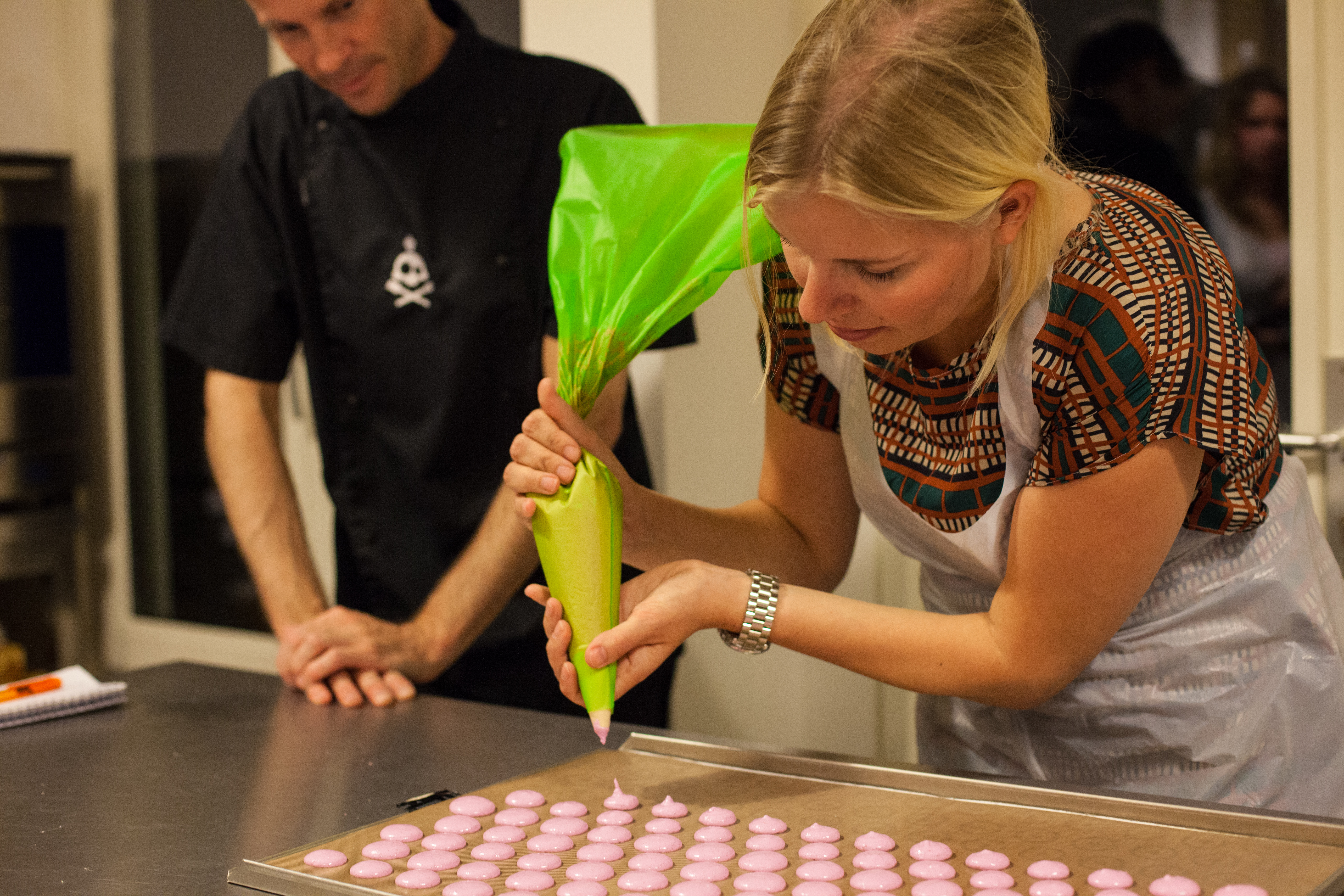 Daarom keek ik ook al maanden uit naar de macaron workshop bij Poptasi. Niet alleen omdat ik dit klusje eindelijk onder de knie wilde krijgen, maar ook omdat het een gezellige “Meet the Blogger” avond beloofde te worden. Naast ik zelf waren Hééérlijk, Laura’s Bakery, Junglefrog Cooking, Kookgek Wilma, Kell’s Kitchen, Uit de keuken van Levine en fotografe Josette Alkema van de partij. Je begrijpt dat dit een gekakel van jewelste was, om over de hoeveelheid fototoestellen maar niet te spreken.