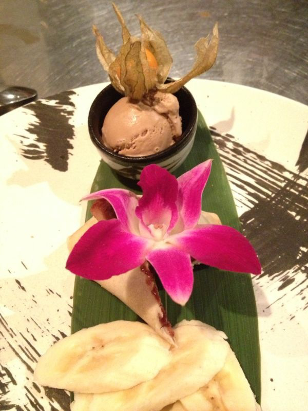 Het nagerecht nam mij wederom mee naar Marokko met een heerlijk koffieijs met bananen, dadel chocolade beignets. Ik ben dol op desserts en ik verheugde mij hier de hele tijd op. Wat een prachtige smaken.