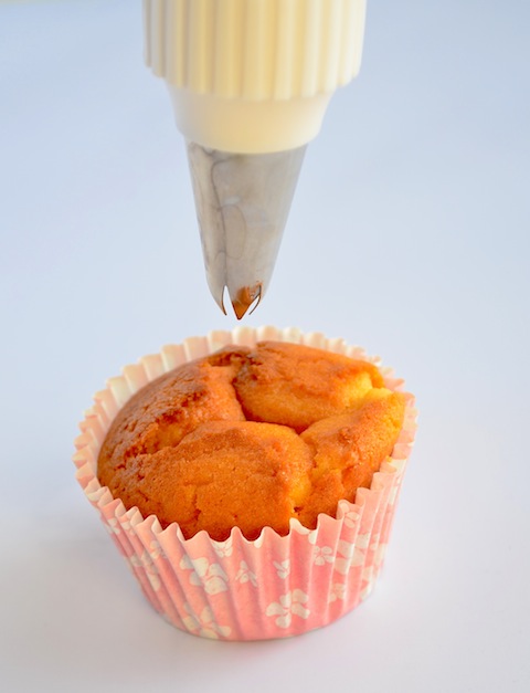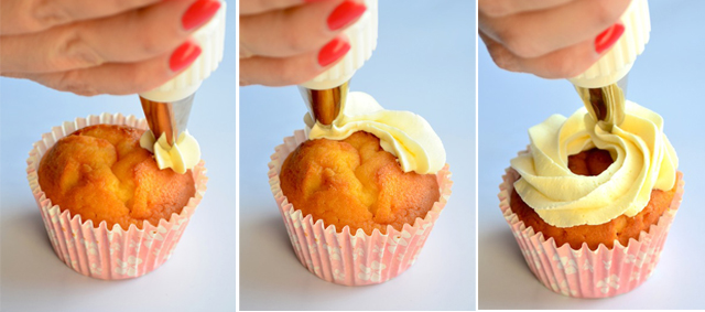 Eindig in het midden van de cupcake en haal de spuitzak voorzichtig om hoog.