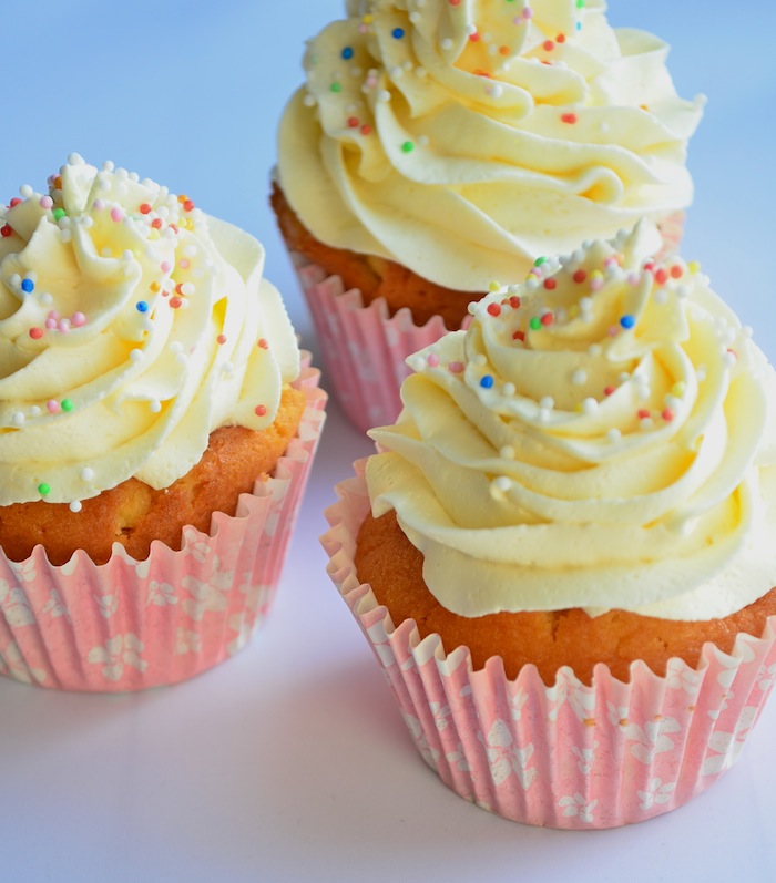 Toeven spuiten met botercrème vergt even wat oefening. Maar je kan blijven oefenen, als je swirl mislukt, veeg je de crème gewoon van de cupcake en begin je weer opnieuw. Net zo lang, totdat je helemaal tevreden bent.