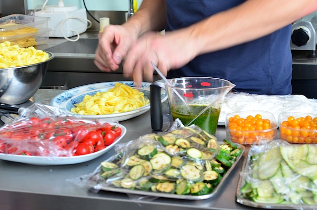 Lunchen deden we lekker in het zonnetje met de verse pasta gemaakt door de andere helft van de groep en daarbij de koffie.