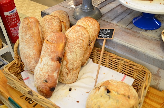Ik hou van zulke plekken. Zodra ik een stap binnen de deur zet, kijk ik mijn ogen uit. Ik zie een mini bakkerij waar brood wordt gebakken, een kleine groentewinkel met verse groente uit eigen tuin, maar ook linzen, kaas en olijfolie in heel veel soorten. In het winkeltje scoor je leuke cadeautjes, vrolijke kommen, leuke boeken en hebbedingen voor in de tuin.
