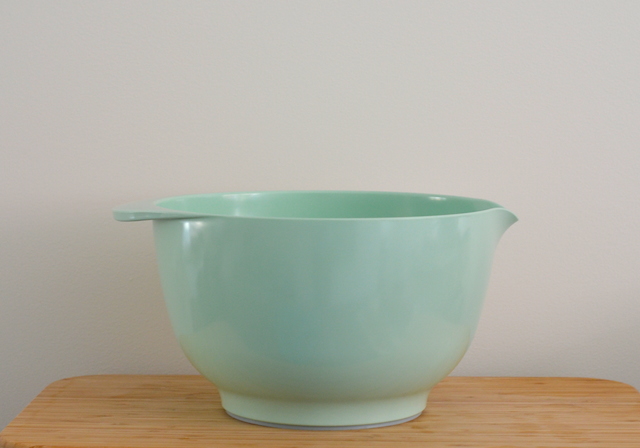 De Margrethe kom van Rosti Mepal bestaat 60 jaar. De beslagkom kreeg in 1954 de naam en is daarmee vernoemd naar de Deense koningin Margrethe. De kom is in verschillende maten verkrijgbaar, vanaf een 0,5 ltr tot 3 liter. Ik kreeg een mooie kom in Retro Green om uit te proberen. Hij ziet er niet alleen prachtig uit, maar door de anti slip ring, blijft deze kom ook perfect op zijn plaats staan. Handig voor in de keuken