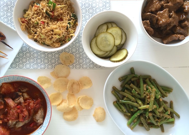 Yes en met succes, al zeg ik het zelf. Ik maakte een Indonesische rijsttafel met rendang, babi pangang, saté ajam, sajoer boontjes, nasi goreng, bami goreng, zoetzure komkommer en kroepoek. Alle recepten kun je op mijn blog vinden.