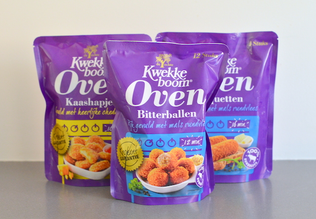 Kwekkeboom heeft daar iets op bedacht en wel in de vorm van ovensnacks. Mijn favo snacks maar dan bereid in de oven in plaats van in de frituur. Het oven assortiment is uitgebreid en bestaat uit croquetten, bitterballen, yes!, kiphapjes in 3 smaken, kaashapjes en een snackmix. En ik mocht proeven, lucky me!
