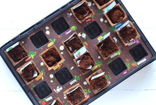 Ik heb nu de zaadjes geplant (op 18 feb, even een reminder voor mijzelf), in kleine bakjes met wat aarde. Dat was handig want bij de moestuinkit zaten van die kleine compacte aarderondjes. Even wat water erop gieten en je had meteen genoeg aarde. De zaadjes zaten in afbreekbaar papier, dus dat was zo gepiept. Ze staan in mijn keuken, zo krijgen ze voldoende licht en vergeet ik niet om de plantjes water te geven.