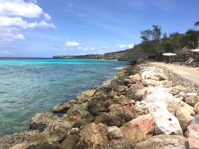 Nog een aanrader is restaurant Karakter in het Westen van Curaçao. Het is onderdeel van het resort Coral Estate. Je kunt hier heerlijk ontbijten en heel goed lunchen. Dus dan zou het avondeten ook wel goed zijn. En je mag gratis gebruik maken van de strandbedjes (met stopcontact, handig), waar ik mij een middagje prima vermaakt hebt. Je hebt hier geen strand, maar je kunt via een trappetje het water in. Heel fijn!