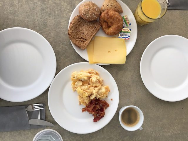 Ontbijten bij de Saint Tropez Ocean Club. Maurits had een American en ik een normal breakfast. Maar uiteraard pikte ik een pannenkoek van Mau, deze was super lekker.