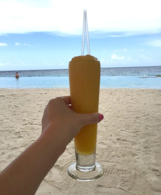Mijn favoriete plekje in de Jan Thiel baai, met je voeten in het zand plaatsnemen aan een van de picknick banken bij Zest.