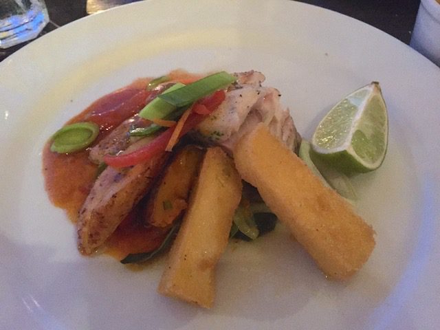 Het werd uiteindelijk een lokaal visje, Piska Fresku met een Creoolse saus, groente en polentafriet. Erg lekker. En wij hadden een prachtig plekje met uitzicht over de gekleurde huisjes.