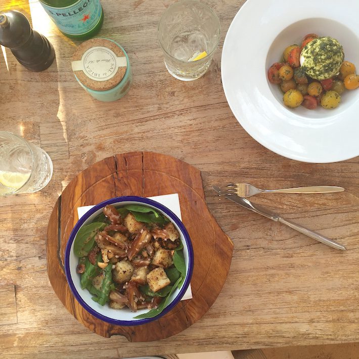 De meeste strandtenten waren al gesloten (ik heb voor menig dichte deur gestaan) maar gelukkig was Babylon Beach nog wel open. Wat een fijn plekje. Op de kaart vind je enkel biologische gerechten. Ik had een heerlijke salade met spinazie en dadels en Maurits had een caprese salade. Erbij verse foccacia met aioli. Een lekker vers sapje ernaast, helemaal prima.