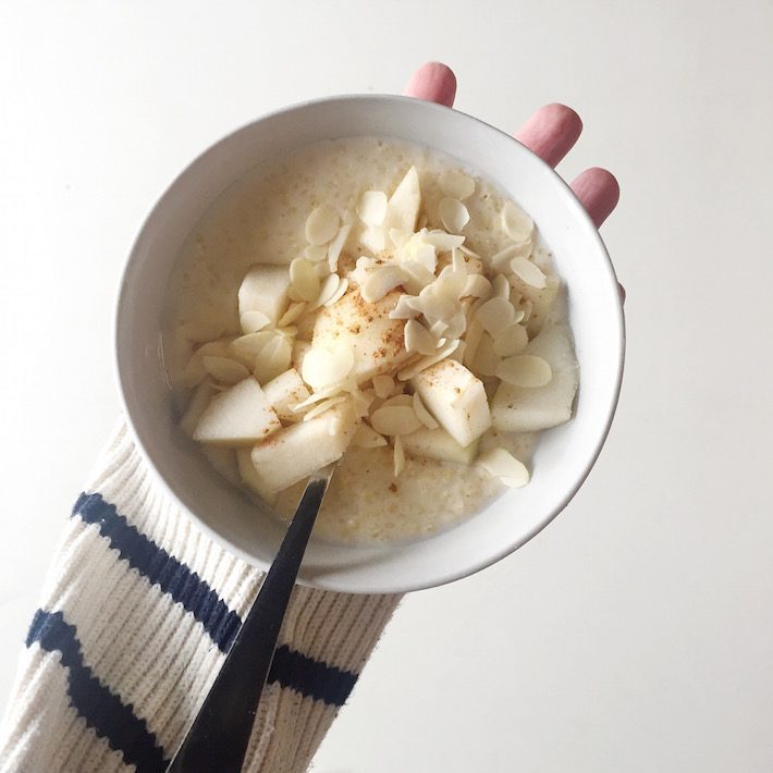 Nog een dagje video opnames, maar dan voor een ander platform. Ik kookte 5 recepten, waaronder deze pap van gierst. Ik had het nog nooit eerder gegeten maar vond het superlekker.