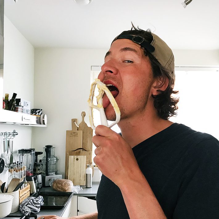 Zelf de kom uitlikken mag nu even niet (ivm de rauwe eieren). Gelukkig vindt Maurits het helemaal niet erg om die taak op zich te nemen.