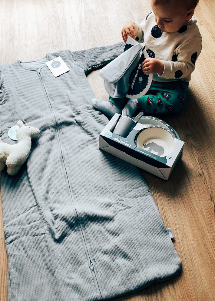 En ik mocht leuke pakketjes in ontvangst nemen. Jollein heeft ons getrakteerd op een mooie slaapzak voor Lasse. Ook kreeg ik nog een leuk serviessetje, een alpaca knuffeltje (love alpaca’s), een groeimeter en een waterproof slab. Thanks Jollein voor het leuke pakketje.
