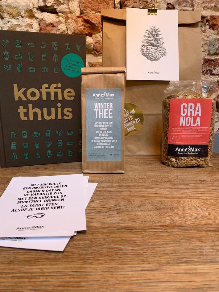 Ben je nog op zoek naar een leuk cadeau voor die ene culinaire vriend of vriendin? Ken je iemand die van thee,- en/of koffie houdt? Dan hebben wij dé cadeautip. Via ons kun je nu een heerlijk cadeaupakket bij Anne&Max shoppen voor een zacht prijsje. De inhoud is door ons samengesteld en we hebben een hele fijne korting afgesproken met Anne&Max. In het pakket zit onder andere een boek, een theetje en een granola.
