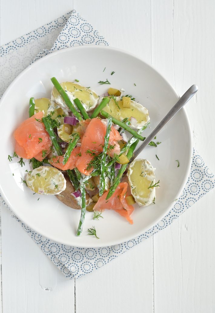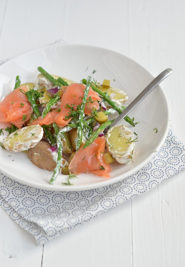 Mijn lievelingsbijgerecht bij een barbecue is aardappelsalade. En ik ben guilty, die kant en klare van de Appie vind ik heerlijk. Maar je kunt een aardappelsalade ook heel fancy serveren, met asperges en zalm bijvoorbeeld. Of met gerookte makreel, zoals ik eerder als eens maakte. Dan is het ook geen bijgerecht meer, maar kun je dit prima als avondeten eten.