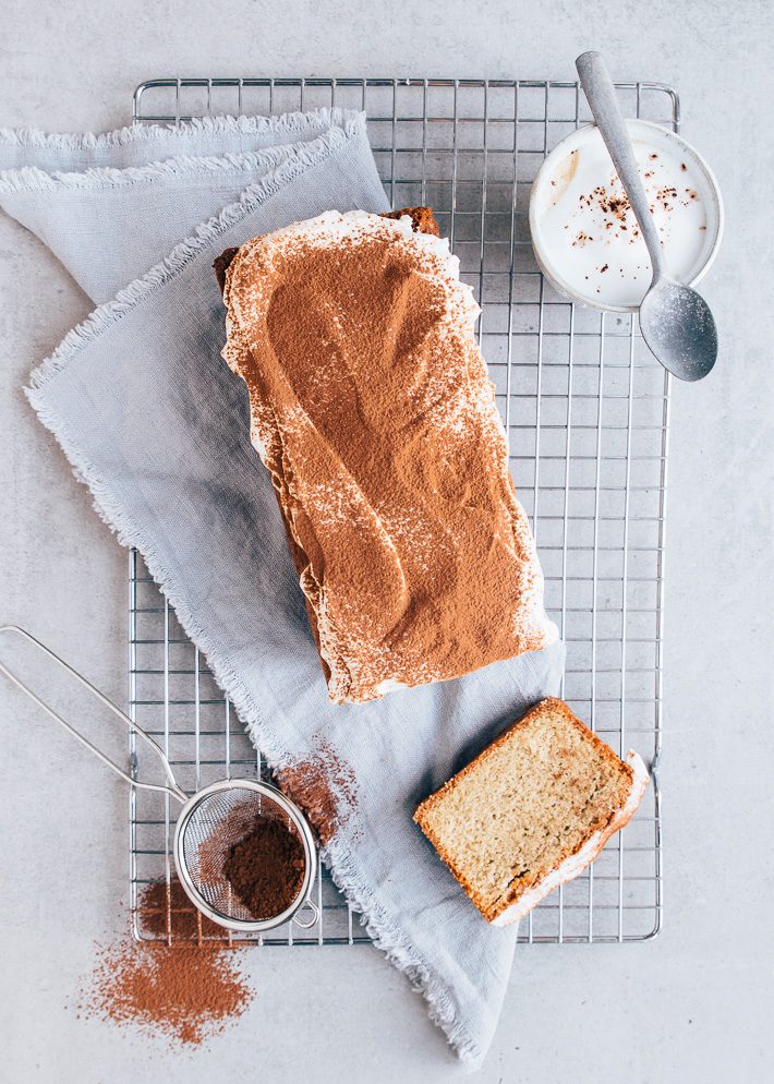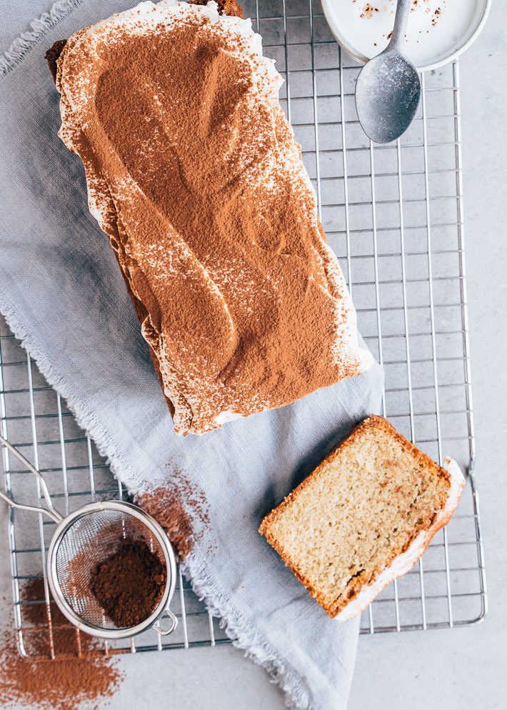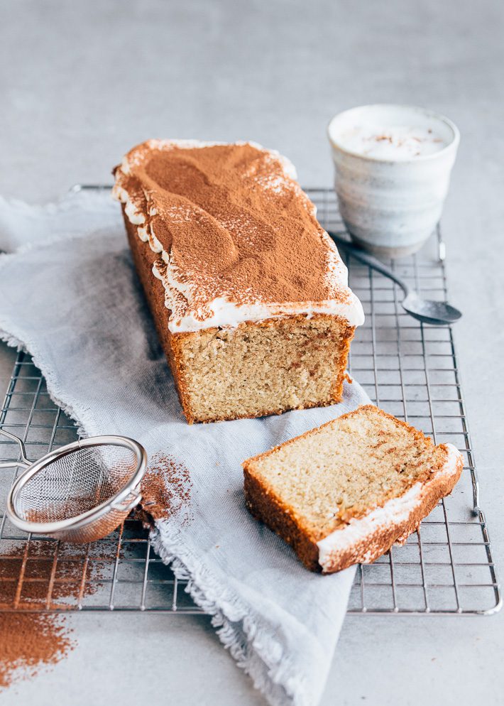 Bak de cappuccino cake in 6o minuten gaar. De cake is klaar als een satéprikker er schoon en droog uit komt. De ene oven is de andere niet, dus houdt de koffiecake goed in de gaten.
