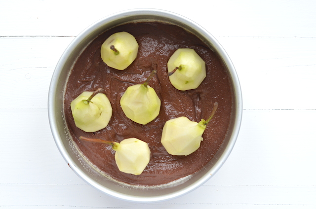 Chocolade perentaart met hele peren