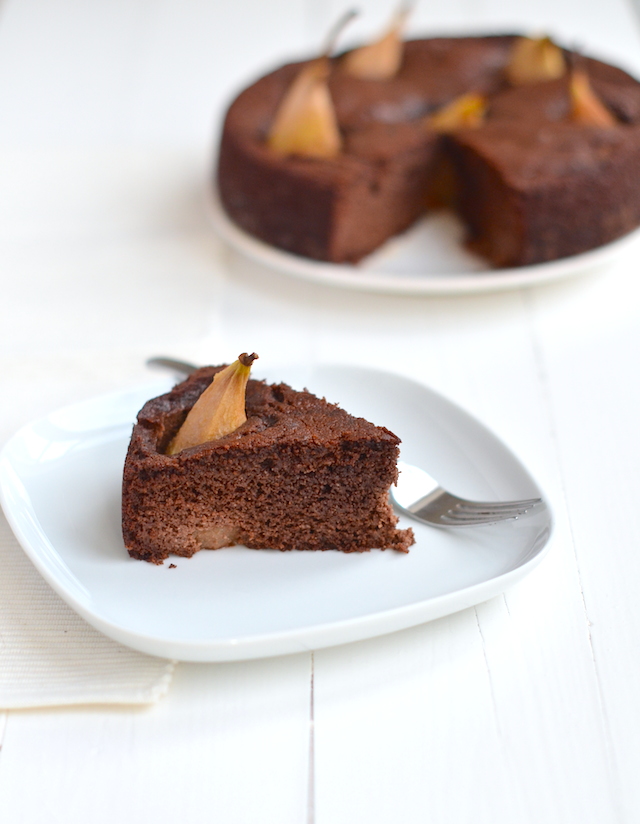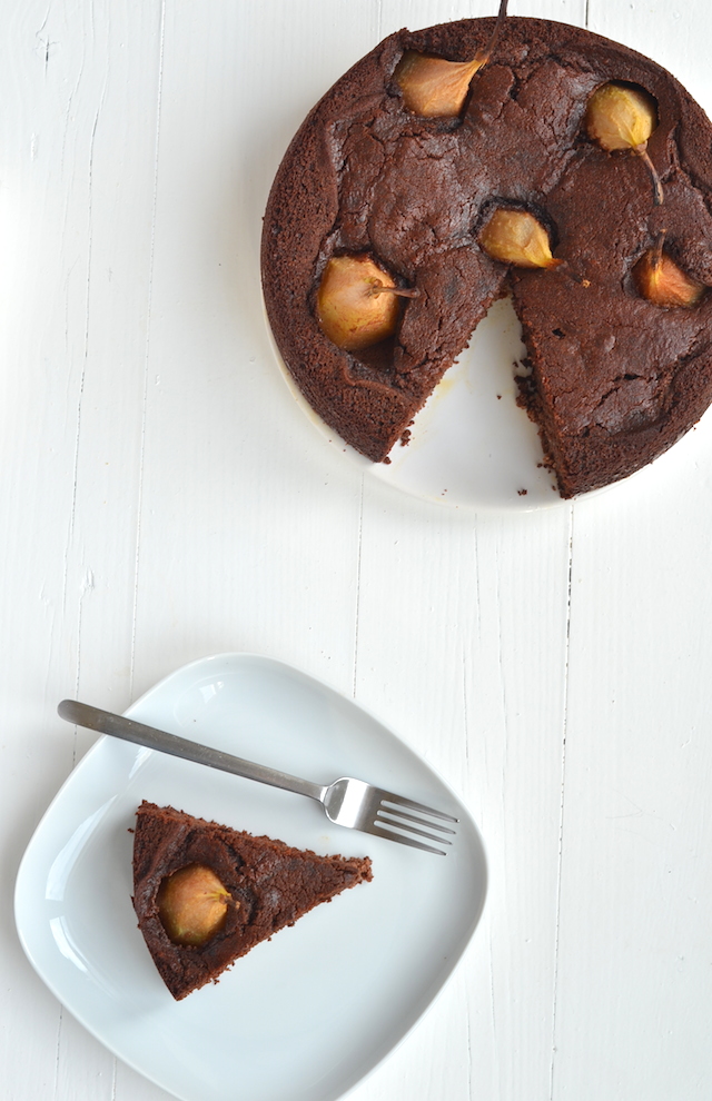 Peer en Chocola zijn meant to be! Deze combinatie is hemels.. Al eerder maakte ik peren-chocoladetartelettes maar vandaag heb ik een iets gezonder receptje voor jullie. Ik wilde een perentaart maken met hele peren erin. Van de markthal nam ik kleine peertjes mee, speciaal voor kinderen, maar ook perfect voor in een cake. Op het laatste moment besloot ik er een chocolade versie van te maken en dat was geen domme zet.
