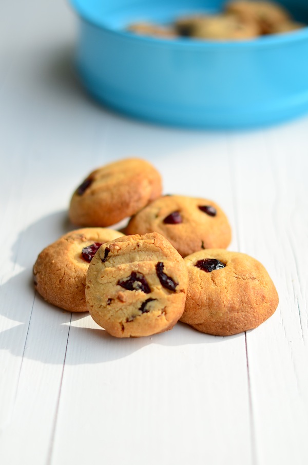 Het was alweer een tijdje geleden dat ik koekjes had gemaakt. Ik doe dit bewust niet te vaak omdat ik ten eerste al de helft van het koekjesdeeg in mijn mond stop en ten tweede vers gebakken koekjes hier geen dag veilig zijn. Typisch geval van zelfbescherming dus. Maar omdat ik een high tea party gaf dook ik toch de keuken in voor deze verrukkelijke cranberry koekjes met stukje witte chocola.