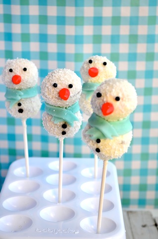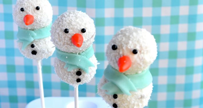 Strooi de kokos over de sneeuwman en laat de sneeuwpop drogen in een cake pop standaard of in een hoog glas.