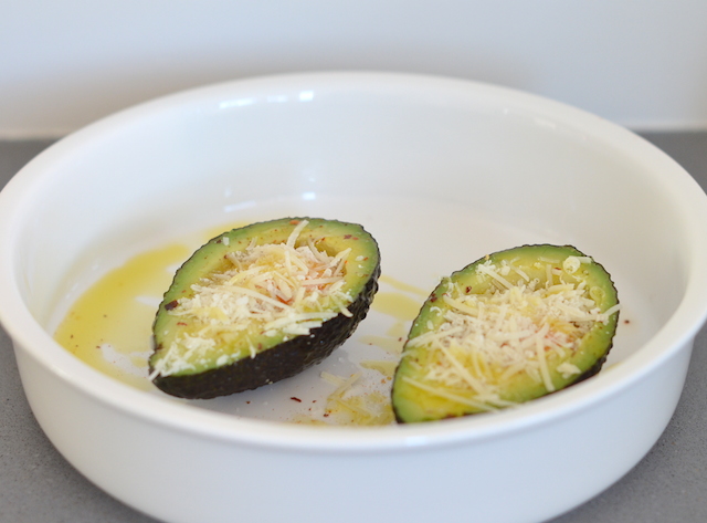 Bak de avocado’s in ongeveer 15 minuten af in de voorverwarmde oven.