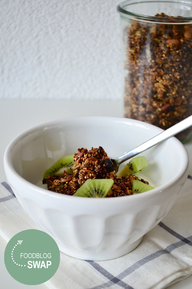 Deze granola met quinoa heb ik niet zelf bedacht. Het recept is van quinoa queen Maaike van Micook. Maaike heeft heel veel quinoa recepten op haar blog staan, dus mijn keuze werd al snel duidelijk. Het moest iets met quinoa worden en iets wat ik nog nooit eerder gemaakt heb. Die regel heb ik zelf bedacht om de uitdaging nog wat groter te maken.