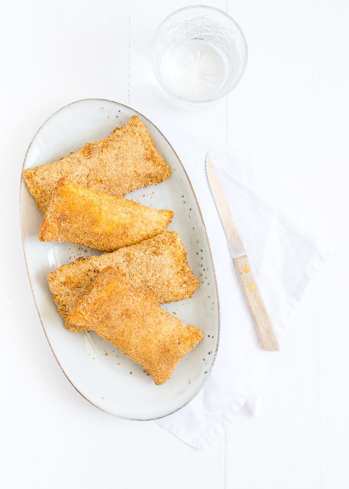 Haal de kaassoufflés eerst door het eimengsel en daarna door het paneermeel. Als je zeker wilt zijn dat ze niet gaan lekken, kan je deze stap eventueel nog een keer herhalen. Dan krijg je dubbel gepaneerde kaassoufflés.