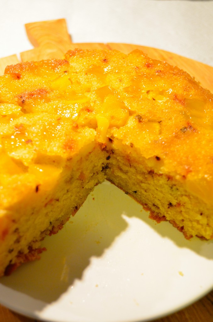 Giet het beslag over de mango en bak de taart in ongeveer 30 – 35 minuten af.