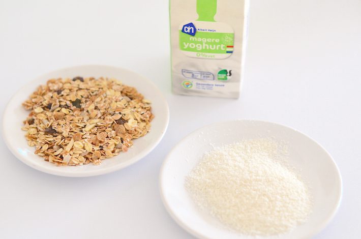 En nu denk je misschien daar heb ik toch ’s ochtends helemaal geen tijd voor. Jawel dat heb je wel. Want dit is easy en een goede voorbereiding is het halve werk. Je moet de bananen met stokje en al van tevoren invriezen. Dit kun je echt prima een aantal weekjes bewaren in de vriezer (gewoon in een diepvrieszakje). Op de ochtend zelf hoef jij alleen de banaan in de yoghurt te dippen en deze te besprenkelen met wat muesli. Ik gebruik zelf altijd de muesli van Zonnatura omdat deze suikervrij is. (nee dit is niet gesponsord). Ik heb persoonlijk niets tegen suiker, tenminste als je het met mate gebruikt, maar suiker in dingen waarvan het niet nodig is vind ik zonde. Als ik suiker eet, dan wil ik ook gewoon dat het heel lekker is. Zoals een zelfgebakken brownie of een flinke ijsco van de ijssalon. Maar niet in mijn dagelijkse ontbijt. Gebruik jij liever een andere soort muesli, be my guest.