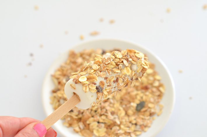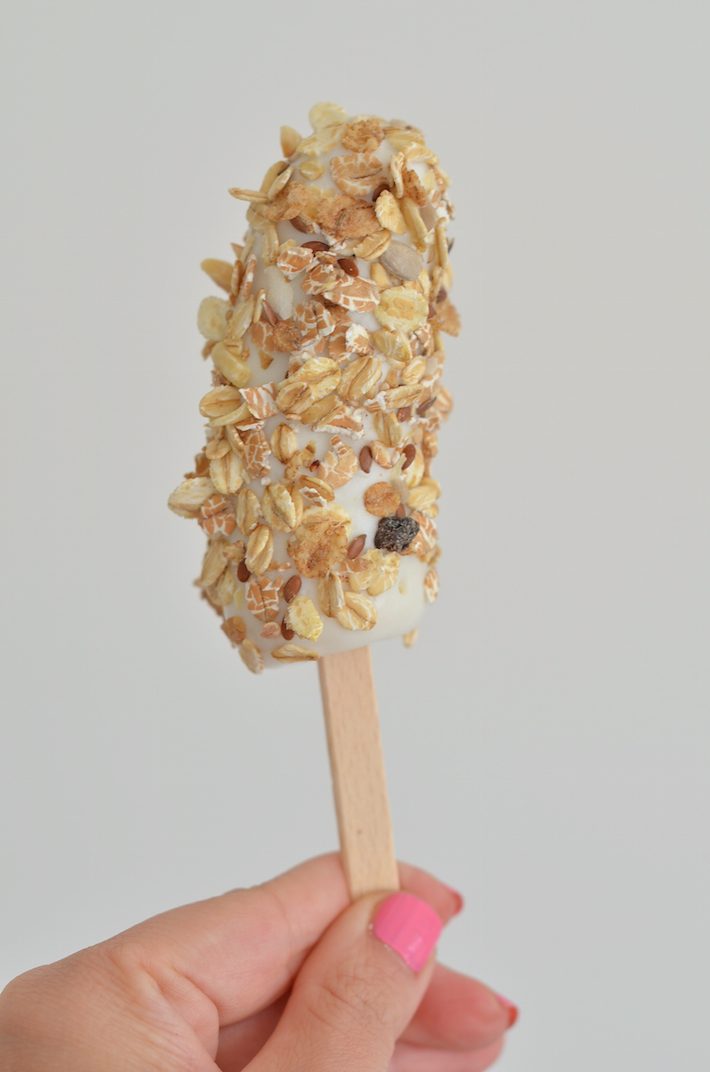 Oh yes ice-cream for breakfast. Geen kind die daar niet gelukkig van wordt. Heeft jouw kiddo moeite met ontbijten, dan moet je deze ontbijt bananen eens proberen. Stiekem is het gewoon mijn dagelijkse ontbijt, yoghurt met muesli en een halve banaan, maar dan op een hele leuke manier gepresenteerd. In de vorm van een ijsje. Ideaal ook als het kwik boven de 30 graden stijgt.