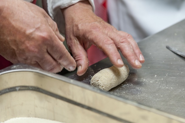De kroketten moeten aan alle zijden goed bedekt zijn.
