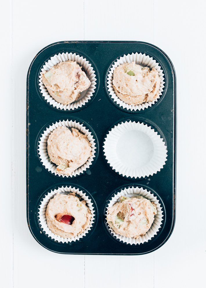 Bak de rabarbermuffins in ongeveer 20 – 25 minuten gaar.