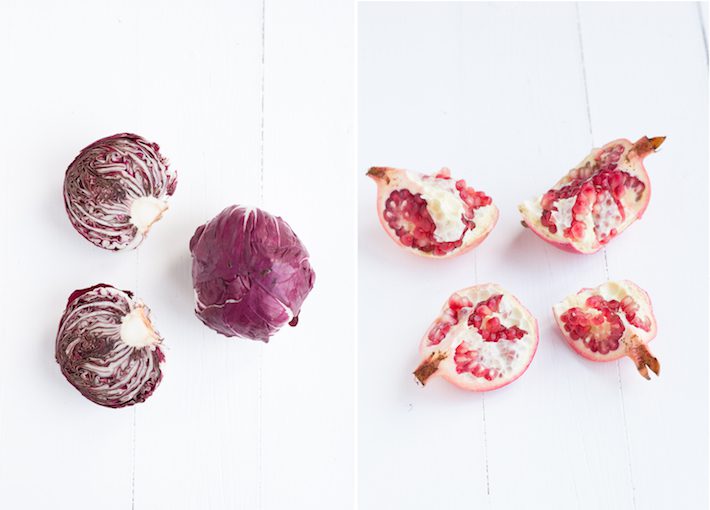Ik houd echt van de frisse smaak van granaatappel. Het is even een klusje om de pitjes te verwijderen (ik gebruik de onderwater methode) maar dan heb je ook wat. Zo mooi, sappig en lekker! Ik heb deze smaak terug laten komen in de dressing. Daarvoor gebruikte ik granaatappelmelasse. Dat kun je bij de delicatessenwinkels kopen. Kan je je het niet vinden, dan kan je uiteraard ook wat citroensap gebruiken of een lekkere fruitige azijn, als het maar iets zurigs is. Dat is namelijk heerlijk in combinatie met het bittere van de lof, de smokey eendenborst en de ietwat zoete appel en granaatappel. En het ziet er ook nog eens heel feestelijk uit. Vind je ook niet?