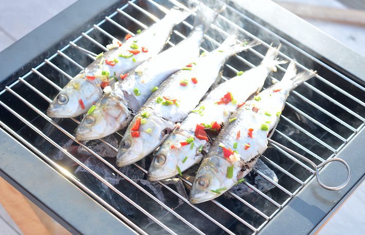 Rooster de sardientjes in 2 tot 3 minuten per kant goudbruin op de bbq.