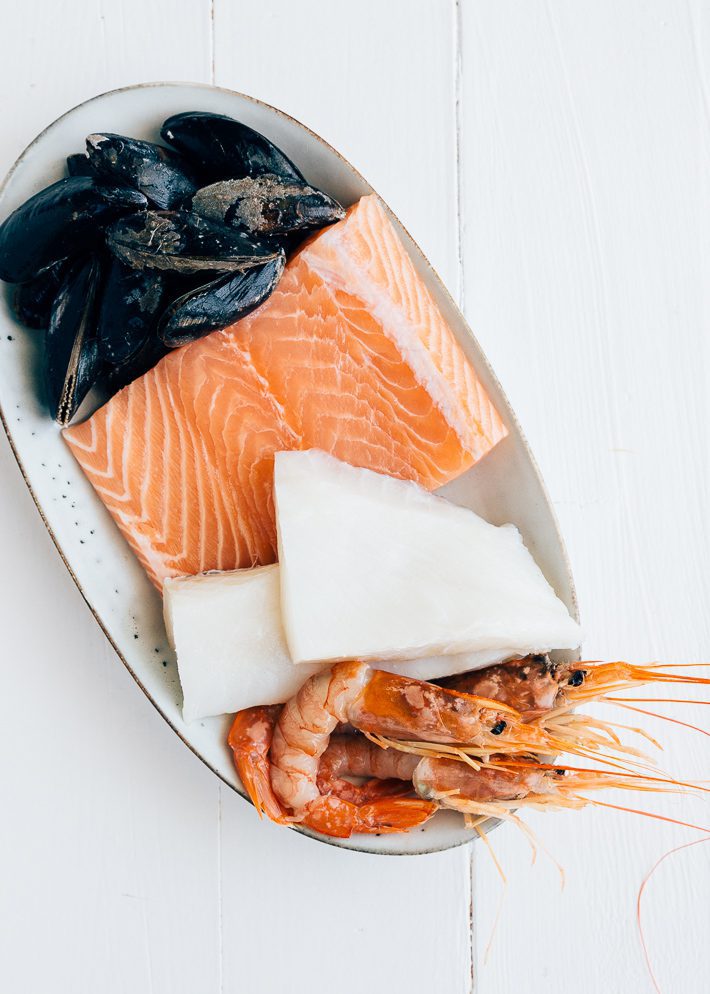 Kraakverse vis! Ik koos voor een mengeling van zalm, heilbot, mosselen en gamba’s. Heilbot is wat steviger en daardoor perfect voor stoofpotjes. Het valt niet uit elkaar. Het is een mediterraans stoofpotje geworden, want het hoofdbestanddeel is tomaat. Lekker licht dus. Ik zou er brood bij serveren, lekker dippen in de tomatensaus, maar pasta of rijst kan ook. Ook leuk om te maken als je vrienden te eten krijgt, ik vind het namelijk best een resto proof recept. Vind je ook niet?
